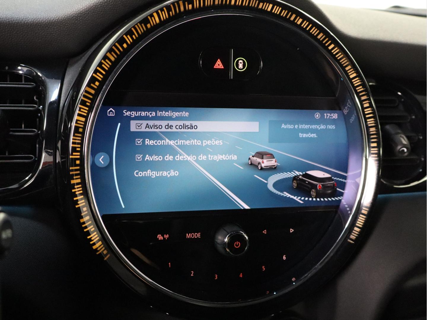 - Sistema de alerta de colisão: monitor para condutor, aviso visual/acústico, funciona acima de 130 kph/78mph, funciona acima de 50 kph/30mph e funciona abaixo de 50 kph/30mph