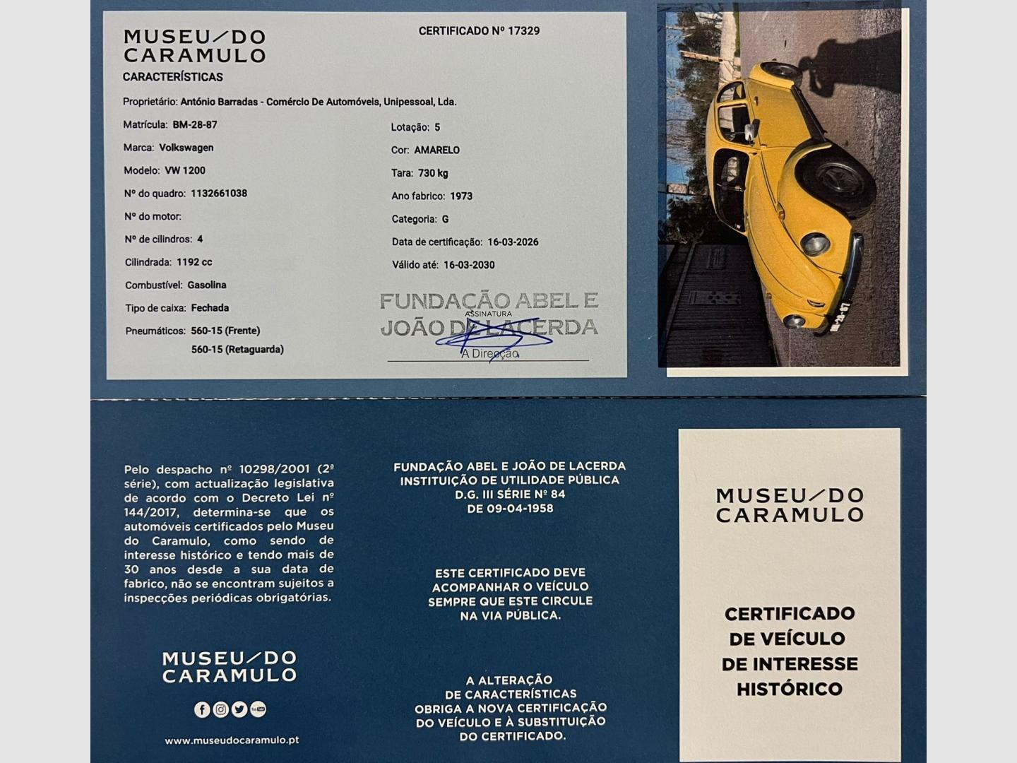 Certificado de veículo de interesse histórico, Museu do Caramulo.